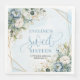 Add elegance and charm to your celebration with these Sweet Sixteen paper napkins featuring watercolor dusty blue flowers and eucalyptus greenery woven around a shimmering gold glitter frame. Designed in a minimalist yet sophisticated style, these napkins bring the perfect touch of refinement to your Sweet 16th birthday party.