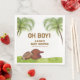 Sport baby shower theme, football baby shower theme, Summer baby shower theme, design feature watercolor American football and helmet on the glass field with typography 'Oh Boy! , A little all star is on the way" text in plam tree background. Perfect for your little slugger or your rookie baby theme, you can customize your own unique text and color.