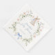 This gender neutral baby shower paper napkin features a delicate, hand-painted watercolor rabbit with a light blue bow nestled among ethereal wildflowers and soft greenery decorating with a soft blue bow at the base of the greenery bringing a touch of storybook magic to your special day. You can easily fill in the template with your own details or go into further editing to change the font style, size, color and placement if you wish. See the matching items in my shop.