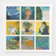 Este gráfico presenta los coloridos contenidos de 9 de las pinturas más conocidas de Van Gogh: Autoretrato (1887), Cypresses (1889), Irises (1889), Still Life (Nature morte) (1888), Orchard Bordeado por Cypresses (1888), Madame Joseph Michel Ginoux (1888-1889), Madame Roulin y su bebé (1888), The Starry Night (1889) y The Bedroom (1889).