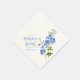 Hermosas pinceladas delfinísimas pinturas de boda botánico de arte azul. Una gran adición personalizada a las tablas bodas. Personalice estas servilletas bodas con su nombre de novia y novio, y fecha de boda. Ideal para bodas delfinas, de temática azul o de jardín. Diseño único y pintura artística original de color pan acuático de Sarah Trett.