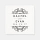 Una combinación perfecta para bodas artísticas, bodas temáticas o vintage de Gatsby, nuestras servilletas de cóctel boda de moda presentan ilustraciones ornamentales florecientes enmarcando sus nombres y fecha boda con letras negras negras negras negras negras nítidas. Coordina con nuestra colección de bodas Deco Flourish.