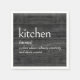 Definición de diccionario de COCINA en negrita en blanco sobre fondo de madera de grano gris oscuro
