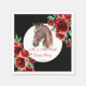 Derby fiesta caballo fiesta ecuestre plantilla personalizada de servilletas. Sencillo retrato clásico del caballo con flores rojas.