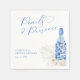 Celebre con estilo con nuestras exquisitas servilletas para despedida de soltera "Perlas y Prosecco". Este diseño elegante presenta una impresionante ilustración de acuarela de una botella de prosecco floral azul adornada con perlas lustrosas y flores blancas delicadas como rosas y peonías, estableciendo el tono para un evento sofisticado y glamuroso. Las servilletas están bellamente acentuadas con una fuente de letra script moderna y elegante, lo que añade un toque de lujo y encanto al aspecto general.