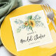 Esta divertida servilleta de papel para desayuno nupcial presenta girasoles rústicos y vegetación de eucalipto. A tus invitados les encantarán estas servilletas de papel para combinar con otras ideas de desayuno nupcial.