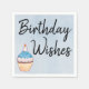 Servilleta De Papel Deseos de Cumpleaños Blue Cupcake Watercolor