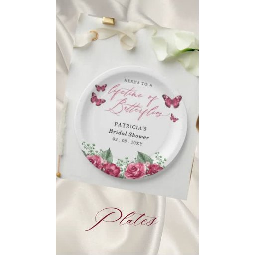 Burgundy Lifetime of Butterflies Bridal Shower SetDiseñado por Maria G