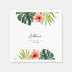 Servilleta clásica de despedida de soltera adornada con motivos tropicales de acuarela: hoja de monstera, hoja de palma y flor de hibisco. Personalice las servilletas con sus detalles para el día de su fiesta. Es simple y el resultado es inmediatamente visible en la pantalla.