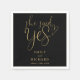 Este elegante guión en negro y oro "Ella dijo que sí" servilleta de la fiesta de compromiso puede ser personalizado con todos sus nombres y fecha especial. Diseñado por Thisisnotme©