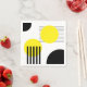 Ilustracion de diseño abstracto con formas geométricas (círculos y rayas) en tonos amarillos y negros sobre fondo blanco.