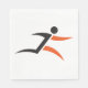 Símbolo de icono negro y naranja de una persona en ejecución. Este diseño parece realmente efectivo en estas servilletas de papel