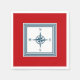 Diseño de temática náutica con decoración de brújula en cuadrados rayados sobre fondo rojo