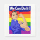 "¡Podemos hacerlo!" es un poster de propaganda estadounidense en tiempos de guerra producido como una imagen inspiradora para aumentar la moral de los trabajadores. Generalmente se piensa que el poster está basado en una fotografía de un servicio de alambre en blanco y negro tomada de una fábrica de Michigan llamada Geraldine Hoff. La poster fue redescubierta a principios de los años 80 y reproducida ampliamente en muchas formas, a menudo llamada "¡Podemos hacerlo!" pero también llamada "Rosie the Riveter" (Rosie la rebelión) tras la icónica figura de una trabajadora de producción de guerra fuerte pero femenina. La imagen de "¡Podemos hacerlo!" apareció en la portada de la revista Smithsonian en 1994 y se convirtió en un sello de correo de primera clase de Estados Unidos en 1999. Este funky conjunto de 50 servilletas incorpora la imagen original de Rosie the Riveter con la bandera gay, y este diseño está disponible en otros productos.