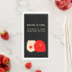 Este papel de servilleta de personalizable muestra en su parte inferior dos formas orgánicas circulares unidas en rojo y crema que simbolizan el amor, la pareja y el matrimonio. Las siguientes palabras están inscritas en blanco amarillento: nombre de la pareja y fecha y lugar del boda. El fondo es negro.