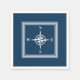 Diseño de temática náutica con decoración de brújula en cuadrados rayados sobre fondo azul