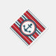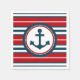 Diseño náutico con decoración de ancla en forma redonda sobre fondo rayado rojo, azul y blanco