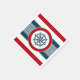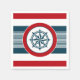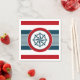 Diseño náutico con decoración de brújula en forma redonda sobre fondo rayado azul, rojo y blanco