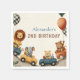 Trae la diversión del hipódromo a la jungla con este adorable diseño de cumpleaños safari "Two Fast". Con animales juguetones como leones, elefantes y osos conduciendo coches de carreras coloridos con globos y pancartas, es el tema perfecto para la celebración de su segundo cumpleaños.