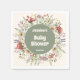 Servilletas de papel para baby shower con temática de hongos que presentan una caprichosa corona de acuarela de hongos rojos, flores silvestres, lavanda y vegetación suave con un centro terroso de salvia. Accesorios de mesa lindos y decoraciones de fiesta encantadoras para un baby shower con temática de hongos del bosque, perfectos para una celebración de baby shower caprichosa, linda y terrosa. Personalizadas en honor de la futura mamá con su nombre y fecha del baby shower - ideales para mesas de postres, estaciones de bebidas, spreads de brunch y un montaje acogedor de baby shower rústico boho/bosque.
