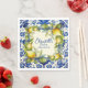 Celebre a la futura mamá con estos azulejos mediterráneos vintage azules y servilletas de papel inspiradas en limones. Estas servilletas de papel para Baby Shower con azulejos azules vintage y limones pueden ser personalizadas con sus propios detalles. El diseño presenta un fondo de azulejos azules vintage con ilustraciones realistas de limones.