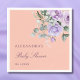 Personaliza esta servilleta de papel para baby shower Lilac Peach Peony, que presenta hermosas flores de peonía lavanda en acuarela delicadamente acentuadas con un suave verde contra un fondo de durazno suave. Estas servilletas son perfectas para una baby shower floral, ofreciendo un toque elegante y chic en hermosos tonos de lavanda. Perfectas para agregar un detalle refinado a tu celebración especial, estas servilletas unen el estilo y la función para hacer que tu baby shower lavanda sea memorable.