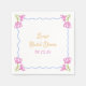 Relájese en su ducha de novia con estas llamativas servilletas florales, de mano, con una encantadora mezcla de flores rosas, delicados bordes de acequia azules y un guión elegante. Este diseño lúdico y elegante añade un toque de romanticismo vintage y encanto artístico, perfecto para fiestas del jardín, duchas novidas boho o fiestas de té de colores. Personalice con el nombre de la novia y los detalles del evento para crear un toque elegante y personalizado para su celebración.