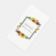 El diseño presenta elegantes girasoles, rosas y margaritas con una paleta de colores otoñales de amarillo dorado, rojo y blanco. El diseño también cuenta con un marco gris carbonoso. Puede cambiar el color de fondo en la parte delantera y trasera al color de su elección o dejar ambos en blanco.