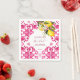 vajilla de ducha de novia fucsia Majolica magenta baldosas con un montón de limones servilletas personalizadas.