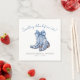 Este diseño simple y elegante de servilletas para despedida de soltera presenta la frase "algo azul antes de que lo haga" en la parte superior en una suave caligrafía de letra manuscrita azul, agregando un toque dulce y juguetón. En el centro, un par de botas de vaquero de acuarela azul con un delicado lazo aporta un toque rústico y campestre.