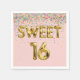 Dorado dulce 16 globos y colorido confeti sobre fondo rosa rubor para la fiesta de cumpleaños Sweet 16. Se puede cambiar el color de fondo rosado.