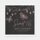 Dulce 16 Rosa Moda de mariposa dorada Fiesta de Papel de Cumpleaños Moderno Las servilletas presentan elegantes mariposas rosas de oro con luces de cuerda sobre un fondo negro con Sweet 16 en un elegante guión caligráfico y personalizadas con "Happy Birthday" y su nombre personalizado a continuación. Personalice editando el texto en los cuadros de texto. Diseñado por ©Evco Studio www.zazzle.com/store/evcostudio