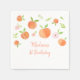 Estas adorables servilletas de cumpleaños tienen melocotones pintados a mano, flores y vegetación.