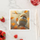 Estas servilletas de cumpleaños incluyen un adorable pájaro pequeño vestido para otoño e invierno con un gorra de punto.