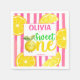 Dulce una limonada rosa primera fiesta de cumpleaños de las niñas plantilla de servilletas impresas personalizadas, lindo limón amarillo rosa de la frontera verano primer cumpleaños servilletas decoración de mesa personalizada