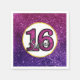 Una elegante y elegante toalla dulce de papel de 16 fiestas. Diseñado con un fondo compuesto de piedras brillantes rosas y violetas. Un marco de círculo con un borde falso de Relieve metalizado dorado en la parte superior con un gráfico de tiopgrafía de moda en el interior que dice dulce 16.