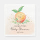 El diseño de la ducha para bebés está decorado con una melocotón adorable colocada en un lavabo acuático. Visite nuestra tienda para ver nuestra colección de diseño de melocotón dulce.