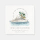 Dusky Crucero Palmas Colección Tema Paisaje Marino.- es una elegante ilustración de acuarela de un barco de crucero con palmeras y vegetación, perfecta para su boda de crucero costero y fiestas playeras. Es muy fácil de personalizar, con sus datos personales. Si necesita algún otro producto o personalización coincidente, por favor envíe un mensaje a través de Zazzle.