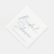 Celebra la futura novia con esta elegante servilleta azul polvorienta de ducha de novia. Con un guión minimalista moderno y un fondo blanco, este diseño añade un toque de sofisticación a su celebración. Personalice con el nombre de la novia un detalle fiesta único y elegante.