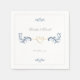 Añada un toque de elegancia a su boda con nuestras clásicas servilletas vintage, que incluyen nombres personalizados de la pareja y la fecha del boda. Decoradas con un romántico corazón de cuerda dorada y encantadores acentos florales rococó azul polvoriento francés, estas servilletas son el recuerdo perfecto para su día especial.