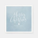 Las servilletas de papel personalizadas para Navidades presentan caligrafía escrita a mano en blanco con el guión "Feliz Navidad" y árbol sobre fondo polvoriento azul en invierno, sencillo, moderno y elegante.