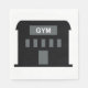Un edificio de gimnasio todo de negro con la palabra gimnasia. Este diseño parece realmente efectivo en estas servilletas de papel