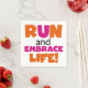 Si te gusta correr, correr 5 Ks, 10 Ks, media maratón o maratones, te encantará este colorido diseño de texto en naranja y rosa caliente que dice ¡Corre y adopta la vida! Corre y abraza camisetas de la vida, caramelos, imanes, botones, tarjetas, pegatinas, llaveros y muchos otros artículos para corredores que aman un diseño de ejecución brillante y colorido.
