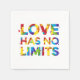 Este diseño presenta la frase "El amor no tiene límites" formada en coloridos colores arcoiris.