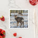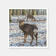El ciervo rojo salvaje en un paisaje de bosques nevados con el escenario mirando directamente a la cámara.