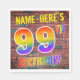 El frente de este emocionante, divertido y vibrante diseño de servilletas de papel con temática de cumpleaños cuenta con un nombre personalizado, y el mensaje "¡99º CUMPLEAÑOS!" con letras con un patrón de gradiente inspirado en el espectro multicolor del arcoiris, sobre un fondo inspirado en la pared de ladrillos. La apariencia se inspira en el arte callejero o en el graffiti dibujado en una pared. Las servilletas de papel divertidas como esta podrían ser usadas en una fiesta de cumpleaños para alguien que está celebrando su cumpleaños 99. [~Z0000367]