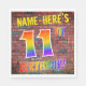 El frente de este llamativo, emocionante y divertido diseño de servilleta de papel con temática de cumpleaños, tiene un nombre personalizado, y el mensaje "¡11º CUMPLEAÑOS!" con letras que tienen un patrón de gradiente inspirado en el espectro multicolor del arcoiris, en un fondo inspirado en la pared de ladrillos. El estilo está inspirado en el arte callejero o en los graffitis dibujados en la pared. Las servilletas de papel divertido como esta podrían ser usadas en una fiesta de cumpleaños que se lleva a cabo para conmemorar el 11 cumpleaños de alguien. [~Z0000367]