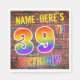El frente de este divertido, vibrante y emocionante diseño de pañuelos de papel con temática de cumpleaños incluye un nombre personalizado, y el mensaje "¡39º CUMPLEAÑOS!" con letras con un patrón de gradiente inspirado en el espectro multicolor del arcoiris, sobre un fondo inspirado en la pared de ladrillos. El estilo está inspirado en el arte callejero o en los graffitis dibujados en la pared. Las servilletas de papel divertido como esta podrían ser usadas en una fiesta de cumpleaños que se lleva a cabo para honrar a alguien que está celebrando su 39 cumpleaños. [~Z0000367]