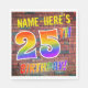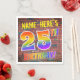 El frente de este vibrante, emocionante y llamativo diseño de servilleta de papel con temática de cumpleaños, tiene un nombre de personalizable, y el mensaje "¡25TH BIRTHDAY!" con letras que tienen un patrón de gradiente inspirado en el espectro multicolor del arcoiris, sobre un fondo inspirado en la pared de ladrillos. La decoración se inspira en el graffiti o arte callejero dibujado en una pared. Las servilletas de papel divertido como esta podrían ser usadas en una fiesta de cumpleaños que se lleva a cabo para conmemorar los 25 años de alguien. [~Z0000367]