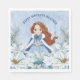 Esta adorable servilleta de invierno nevada Princess tiene una hermosa princesa joven con el pelo rojo usando un vestido azul y blanco de copo de nieve y una capa de piel cálida. La princesa está rodeada de puntitas. Puedes personalizar con todo el nombre de la princesa de cumpleaños especial!